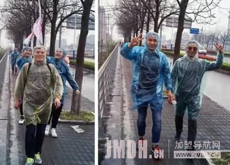 一个卓越的团队,始终是自信的,是具有极强战斗力的,它应具有积极主动、开拓创新、独立协作、共享成功的良好品质。上午的天气下起了雨,徒步没有放弃,穿上雨衣,每个小组扛起一面大旗,冒雨前行。