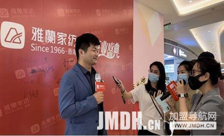 开业盛典伊始,主持人致欢迎词,雅兰家纺总经理朱明先生,雅兰家纺副总经理朱小龙先生,雅兰家纺直营总监曾飞先生、金山湖中心运营部总监李清丽女士,均受邀参加本次开业盛典。
